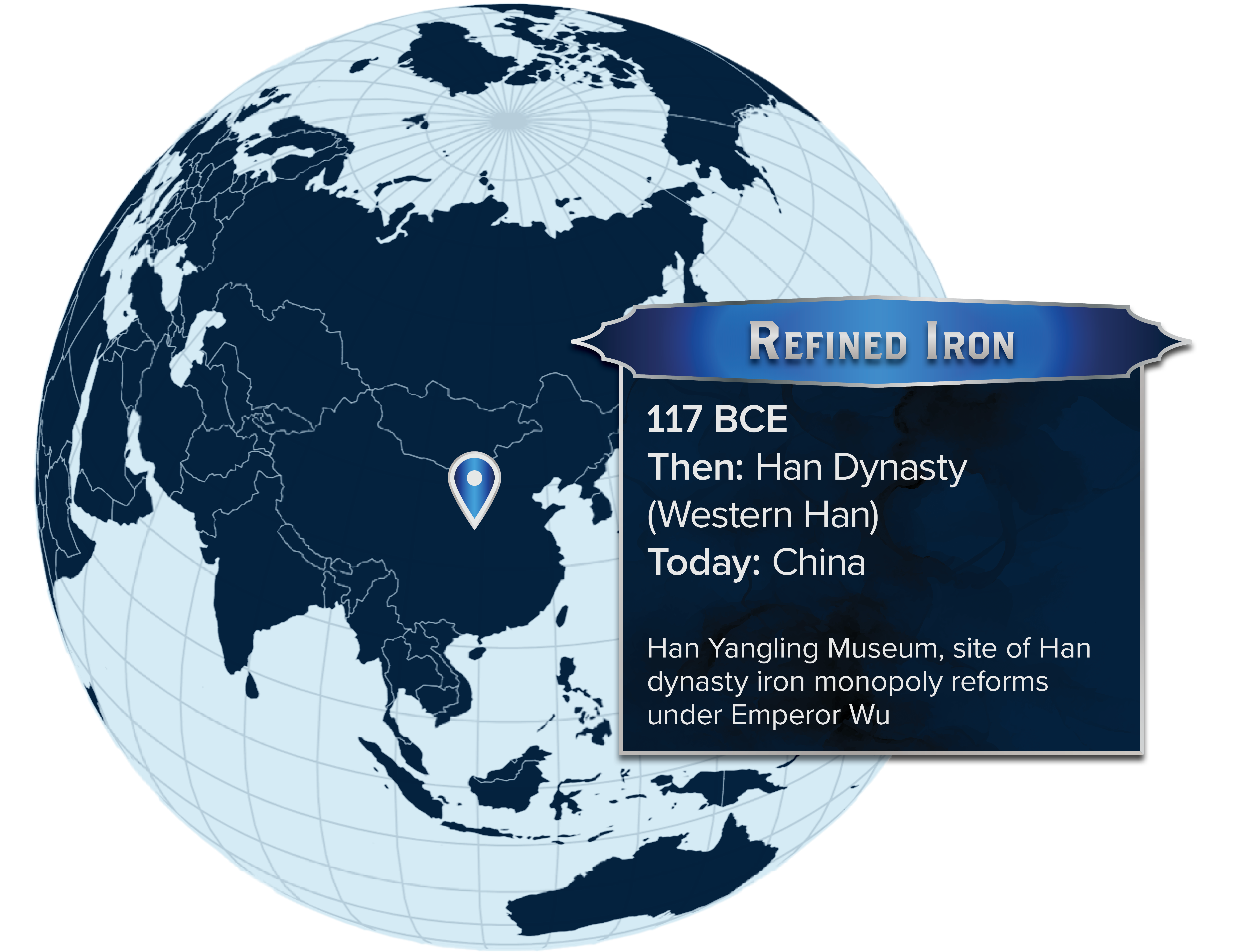 During the reign of Emperor Wu of Han (141–87 BCE), Chinese metallurgy underwent one of the most important transformations in ancient world history: the large-scale production of refined iron and early steel. Han artisans perfected techniques such as finery forging, decarburization, and repeated refining (“hundred-times-refined steel”), allowing them to convert brittle cast iron into tough, flexible wrought iron and steel. This innovation marked a decisive break from the earlier Bronze Age and enabled the Han state to equip its armies with stronger weapons, more durable armor, and standardized tools.