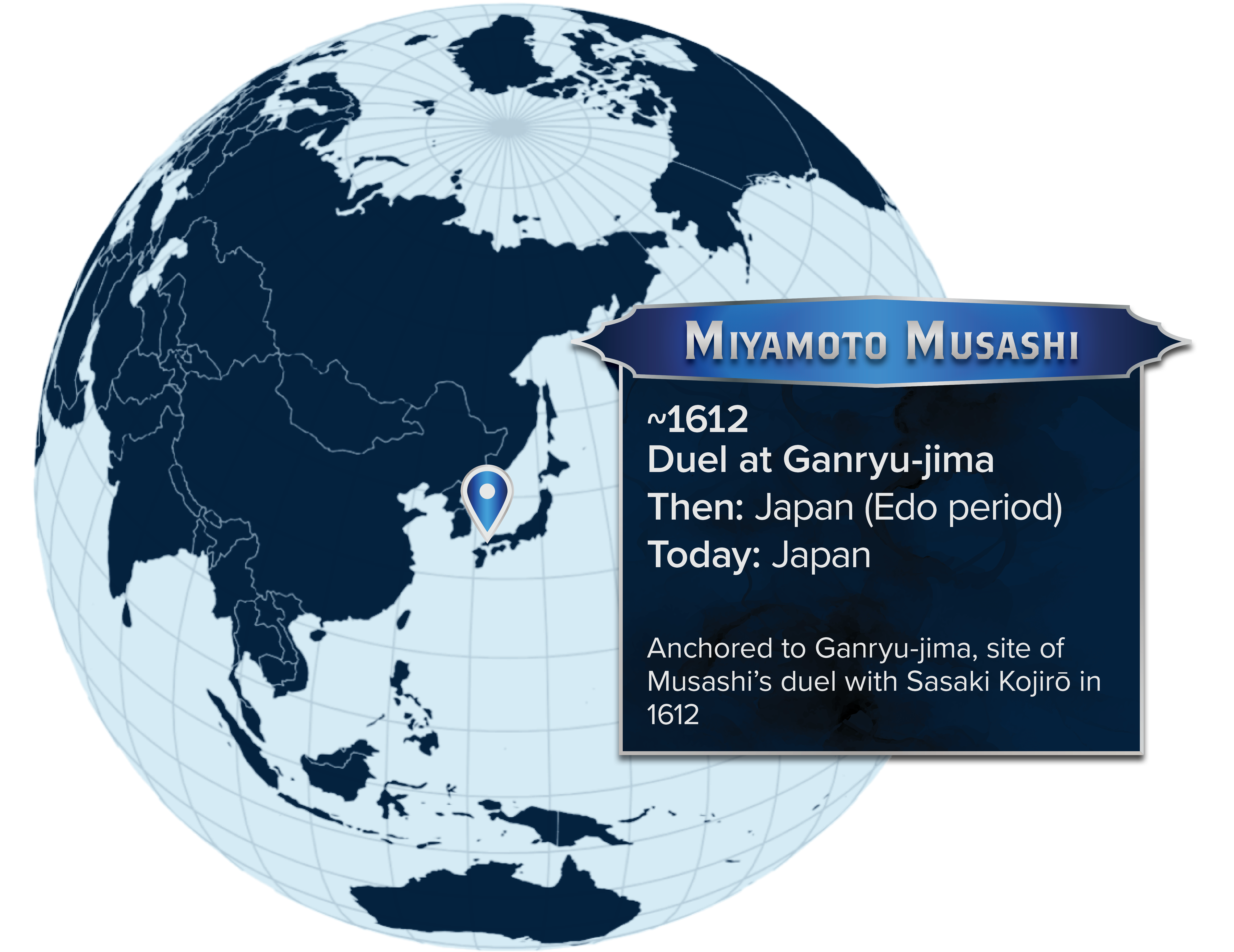 Undefeated in 60+ duels, Musashi founded the Niten Ichi Ryu (two swords as one) and wrote the Gorin no Sho (Book of Five Rings) on how to win in every situation.